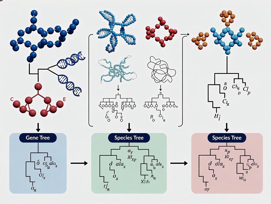 The inference of species' evolutionary history, a cornerstone of comparative genomics and drug discovery research, is often complicated by widespread gene tree discordance—the phenomenon where gene trees reconstructed from different genomic regions display conflicting evolutionary histories [39]. This incongruence can stem from multiple biological processes, including incomplete lineage sorting (ILS), hybridization, and horizontal gene transfer, as well as analytical artifacts such as gene tree estimation error (GTEE) [5]. For researchers in evolutionary biology and pharmaceutical development, accurately resolving species relationships is critical for understanding disease mechanisms, identifying appropriate model organisms, and tracing the origin of gene families.
